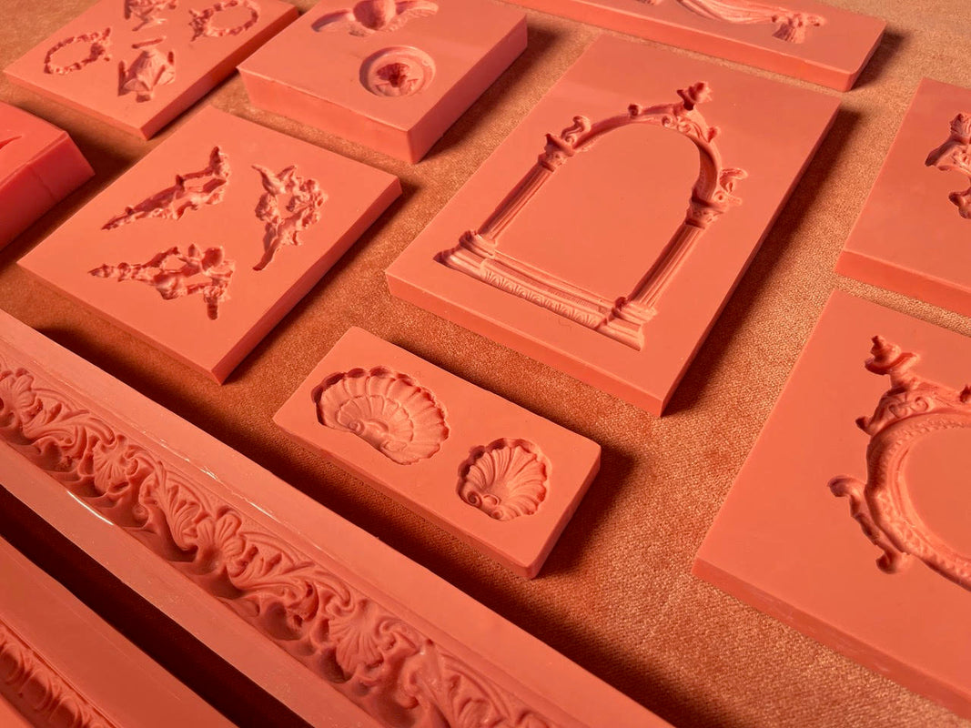 EACH OPERACAST MOLD BEGINS WITH A PIECE OF HISTORY. FAGMENTS OF ANTIQUITY BASS, CHIPPED PLASTER HAND-CARVED TRIMS, AND CENTURIES-OLD CURIOSITIES I’VE COLLECTED OVER THE YEARS.